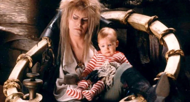Released in the 80’s, a time strife with sexism and inequality, the film explores the perilous relationship between a teenage girl and older man. Jareth the Goblin King takes on the role of a man who pressures Sarah to relinquish her innocence to him: he offers Sarah promises and gifts – things that she’s always wanted – and even tries to seduce her with a date-rape drug, which in the film is represented by a poisoned peach. Jareth goes to great lengths to discourage Sarah from rescuing her innocence, but she appears undeterred and continues to journey through the labyrinth of ‘womanhood’ to take her virtue back after offering it prematurely. The offering of baby Toby at the beginning of the film represents Sarah’s frustrations of remaining a single woman – the offering symbolising Sarah’s desperation to lose her ‘innocence’ for the preference of becoming a companion. Baby Toby’s presence remains not just as a physical embodiment of Sarah’s innocence but as a symbol of what the relationship would have entailed – Sarah becoming a Mother.