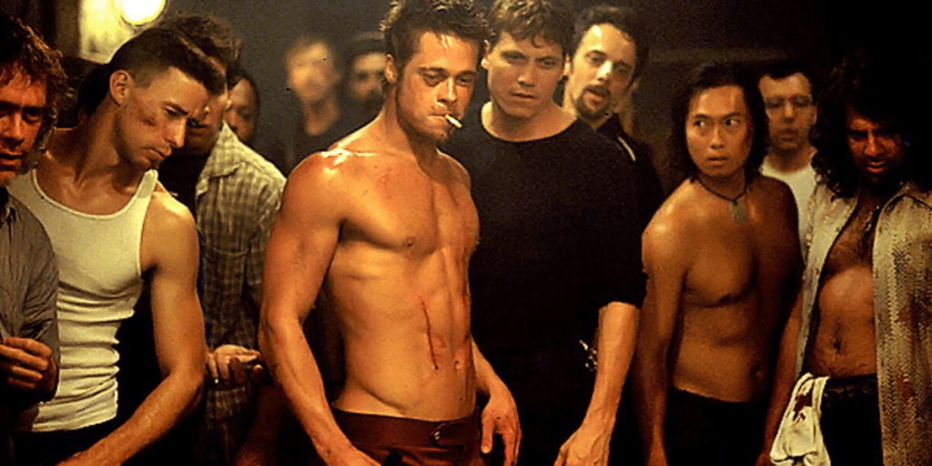 Fight Club, adapted from Chuck Palahniuk’s novel by the same name, has confidently held a position in the ‘Top 5’ film lists of many people – myself included. Following our unreliable and unnamed protagonist (Edward Norton), we witness the creation of a movement dedicated to triggering the collapse of society, all thanks to the equally unstable and collapsing stability of our narrator’s mental health. Our protagonist is an exhausted average worker caught in the mechanics of a capitalistic system that is slowly crushing his spirit. While on a business trip, he comes across Tyler Durden (Brad Pitt) – a free, wild and erratic man who seems to represent everything our protagonist wishes to be. They soon form a friendship based on their mutual desire to be punched in the face (so a super healthy foundation to start). The now infamous fight club is created for men bogged down by their aimless existence to take out their anger on each other’s bare torsos in a totally hetero display of masculinity. The small fight club soon contorts into a cult of identical looking soldiers, intent on raining down anarchy onto the polished and controlled order of capitalism. Of course, the big twist is eventually revealed that our protagonist and Tyler are actually the same person, just different subconscious branches – Tyler representing the reckless id to our protagonist’s ego.