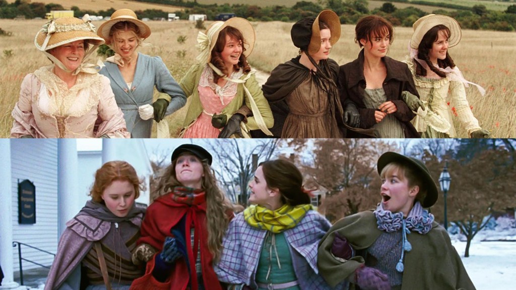 The interactions between sisters, although more niche, also has a trend running throughout its onscreen tradition. In two separate classic novels – both of which have been privy to many adaptations including BBC miniseries’, television films and feature films – the focuses on sisterhood run parallel. Whilst Jane Austen’s Pride and Prejudice’s protagonist is definitely Elizabeth Bennett and her story is directed by her interactions and romance with Fitzwilliam Darcy, the book and 2005 adaptation is given life and Lizzie her personality by the inclusion of the four other Bennett sisters. Louisa May Alcott’s Little Women, written 50 years after Austen’s novel, is the second adaptation of interest. Greta Gerwig’s 2019 film breathed new life into a much-loved story of growing up with sisters. For two groups of young women to strike similarity across continents and across decades, there must be something larger tying them together. Whilst both the Bennett sisters and March sisters are from similar socio-economic backgrounds, are white, of similar ages and both movies feature the aesthetic choices of costume designer Jacqueline Durran, how they interact between themselves feels strikingly timeless.