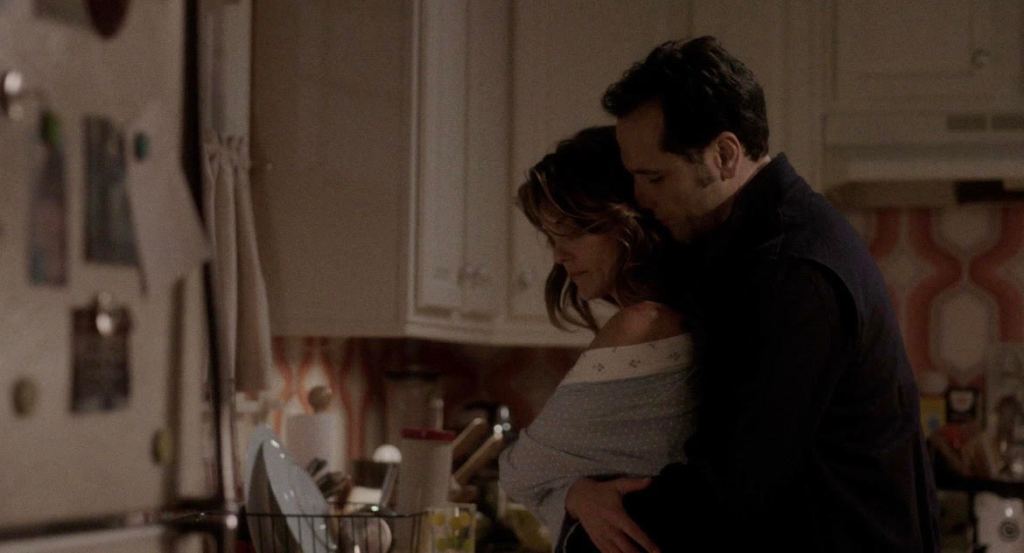 One of the best things about The Americans are the subtle nuances throughout it. There are small yet significant moments of intimacy and trust between the two characters that can almost go unnoticed. It isn’t the kind of show where characters declare their love or express feelings explicitly, but rather the actions and sacrifices show how much they mean to each other. One scene that stands out in particular is the tooth extraction from season three episode three “Open House,” in which Philip is forced to remove Elizabeth’s broken tooth with pliers after a run-in with FBI agent Frank Gaad (Richard Thomas). It is brutal and gruesome to watch. No words are spoken during, yet Russell and Rhys’ pained expressions are most telling. The scene ends with a close-up shot of Russell’s eyes that express so much relief and love towards her husband, the only person she trusts to help relieve her of her pain without hurting her more than absolutely necessary. This really cements the trust and intimacy that has grown between the two over the first three seasons. Another stand-out is in season six episode seven “Harvest,” in which Elizabeth is forced to go to Chicago for Thanksgiving to complete a dangerous mission that involves extricating another KGB agent who is under CIA surveillance. By this point, Philip has quit his life as a spy and is now a full-time travel agent. Elizabeth has agreed to take on all of the responsibilities so as to help her husband’s mental health, although this exacerbates her own feelings of work pressure and stress. Upon arriving in Chicago, however, she realizes that the mission will be nearly impossible to complete alone, and assumes Philip’s volunteering to help with the mission following his multiple years of retirement. Although he has been forced to complete unspeakable acts in the name of Mother Russia and since grown to resent the organization, he doesn’t hesitate to rejoin his wife as a team in a very dangerous assignment. His retirement from the KGB along with Elizabeth’s encouragement speaks volumes about how their relationship has evolved over the series.